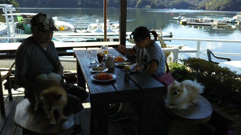 レインちゃん(サエモド犬)とご夫妻、お食事に