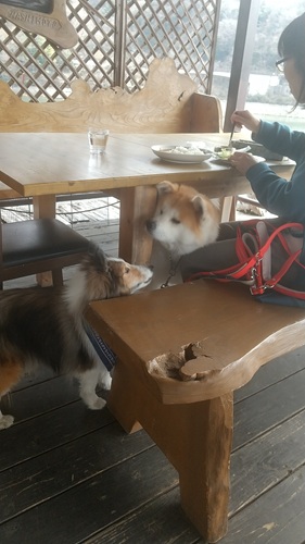 ポメラニアンのカリンちゃんテラスでのお食事